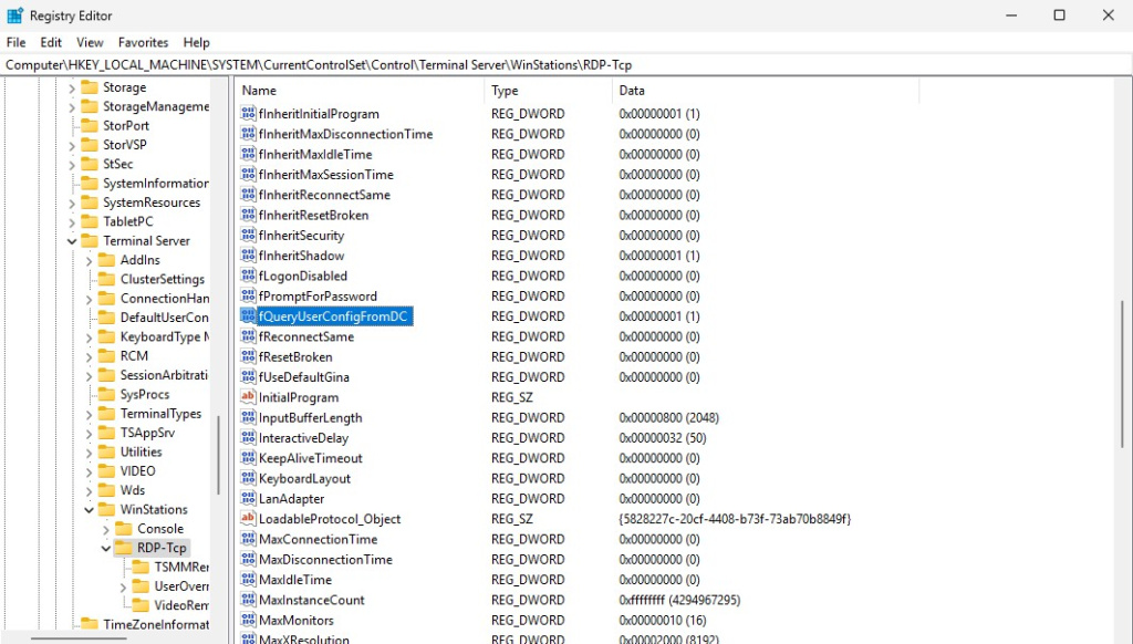 Computer\HKEY_LOCAL_MACHINE\SYSTEM\CurrentControlSet\Control\Terminal Server\WinStations\RDP-Tcp